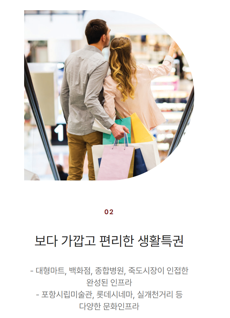 여기에 개발호재도 갖추었습니다. 영일만대교 건설 시 가장 빠르게 접근할 수 있는 수혜지입니다. 동해고속도로를 잇는 18km의 해상교량으로 시의 숙원 사업이며 이를 통해 관광산업 증진 및 남구와 북구를 잇는 환동해권 물류허브의 구심점 역할이 기대됩니다.